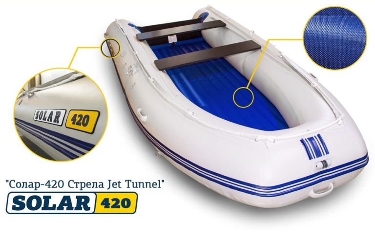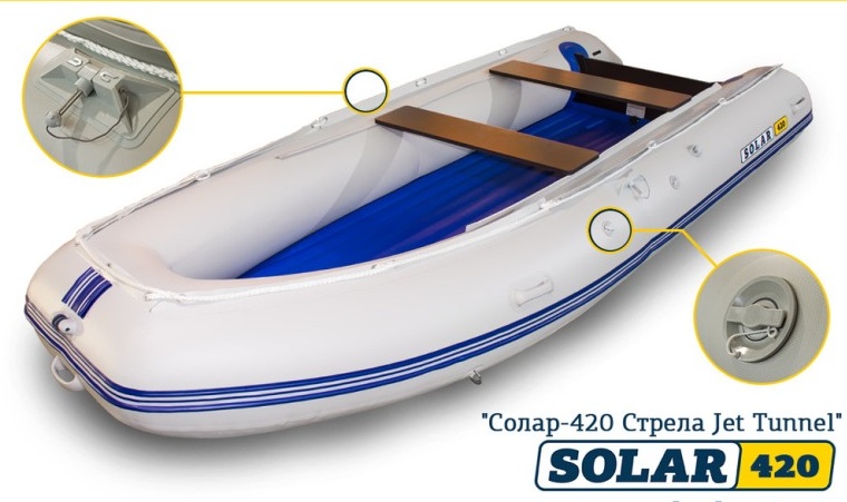 Надувная лодка Solar (Солар)-420 Strela Jet tunnel Серый